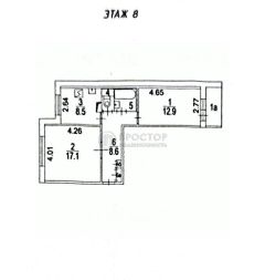 Квартира расположена на 8 этаже 12-этажного дома, построенного в 1982 году. Общая площадь составляет 51,7 кв. м, из которых 30 кв. м — жилая площадь. Две изолированные комнаты (13 и 17 кв. м), кухня площадью 8,8 кв. м.