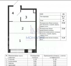 Студия бизнес-класса общей площадью-27,9м2, жилой площадью -20,9,м2 кухня-7м2, сан узел совмещённый.
