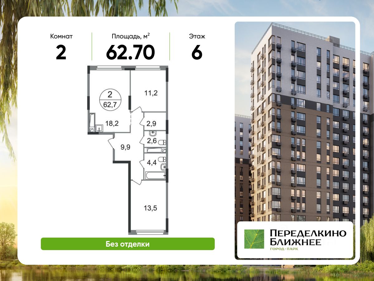 Продается двухкомнатная квартира в городе-парке "Переделкино Ближнее".