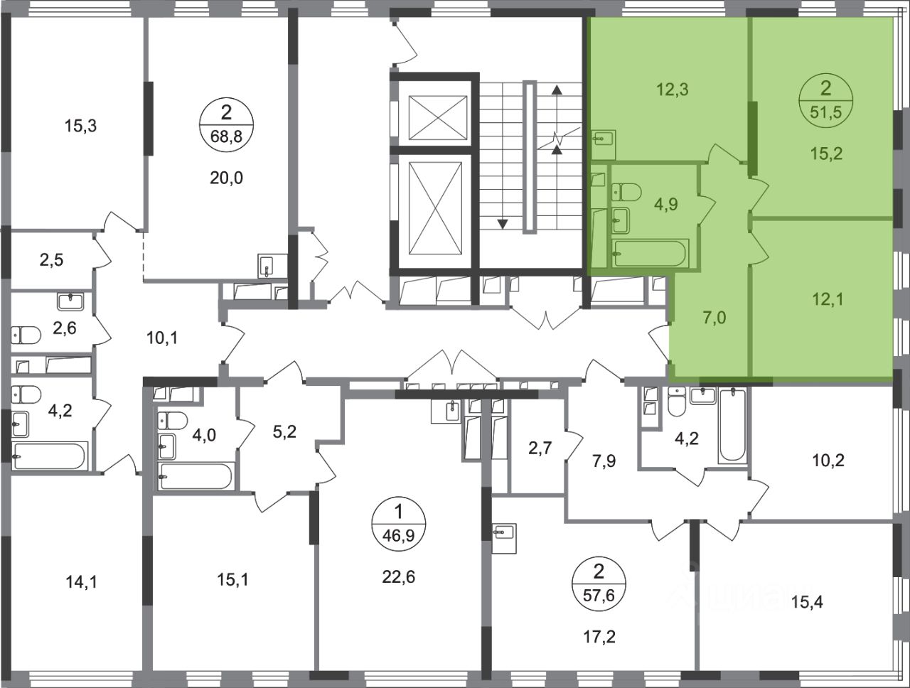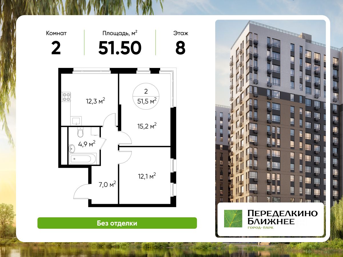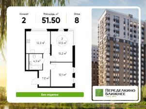 Общая площадь квартиры - 51,5 кв. м, этаж 8 из 17.