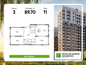 Общая площадь квартиры - 89,7 кв. м, этаж 11 из 17.