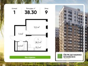Общая площадь квартиры - 38,3 кв. м, этаж 9 из 17.
