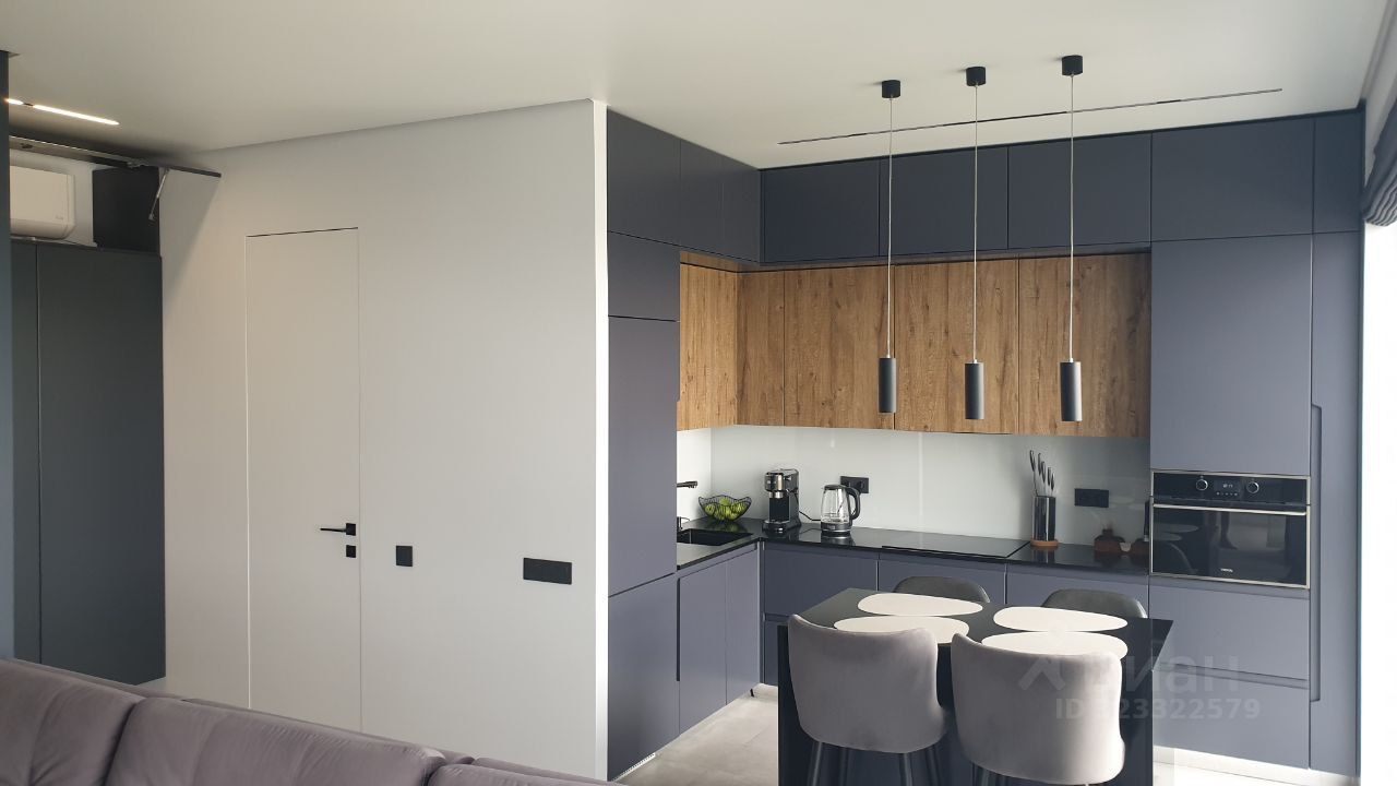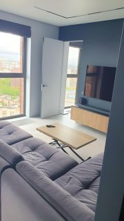 В квартире выполнен качественный дизайнерский ремонт . Вся мебель и техника ( встроенная кухонная , проектор в спальне, телевизор, стиральная машина, кондиционер) входит в стоимость квартиры .Мебель выполнена по индивидуальному заказу, на всех окнах римские шторы с электроприводом. 1 взрослый собственник , полная стоимость в договоре .