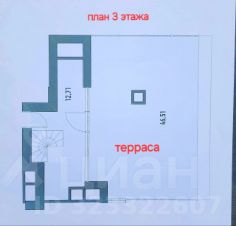 3 этаж имеет площадь 59,2 кв.м. и состоит из: помещения свободного назначения 12,7 кв.м. и террасы 46,5 кв.м.