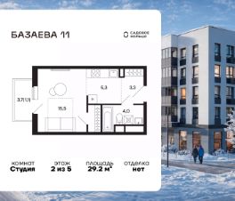 Продается квартира в ЖК "Базаева, 11" студия на 2 этаже 5 этажного дома. Общая площадь: 29.2 кв.м. Высота потолков 2.72 м. Срок сдачи 2 квартал 2027 г. Эскроу-счет. Застройщик ГК "Садовое кольцо".