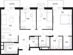Продается квартира в ЖК "Базаева, 11" с 3 спальнями на 2 этаже 5 этажного дома. Общая площадь: 89.3 кв.м. Высота потолков 2.72 м. Срок сдачи 2 квартал 2027 г. Эскроу-счет. Застройщик ГК "Садовое кольцо".