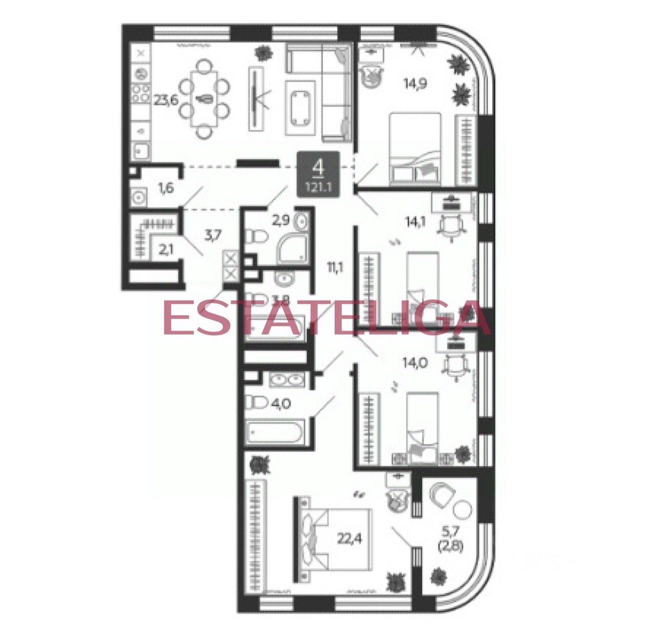 Id 57766. Продаётся Шикарная видовая квартира в ЖК "Shagal" с панорамными окнами!