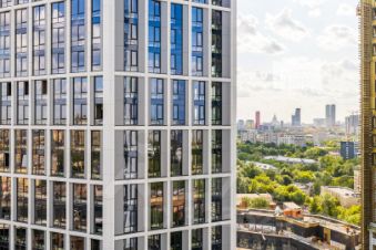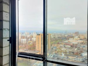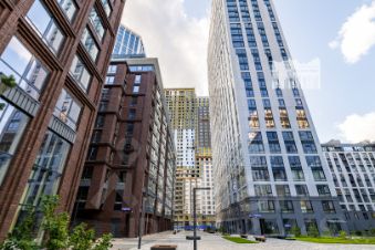 Квартира находится на высоком 19-й этаже. Из панорамных окон открываются красивые виды на город. Из гостиной видно благоустроенный внутренний двор дома.