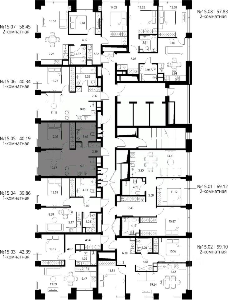 Продаётся 1-комнатная квартира общей площадью 40.19 м² с предчистовой отделкой в ЖК City Вау, квартале North, на 15-м этаже 27 этажного дома.