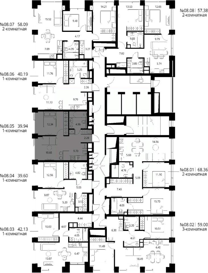 Продаётся 1-комнатная квартира общей площадью 39.94 м² с предчистовой отделкой в ЖК Сити Бэй, квартале Норс, на 8-м этаже 27 этажного дома.