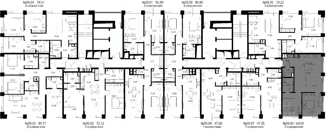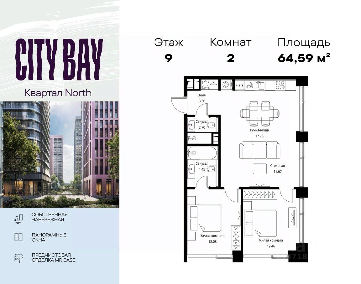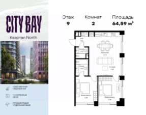 Продаётся 2-комнатная квартира общей площадью 64.59 м² с предчистовой отделкой в ЖК City Вау, квартале North, на 9-м этаже 10 этажного дома.