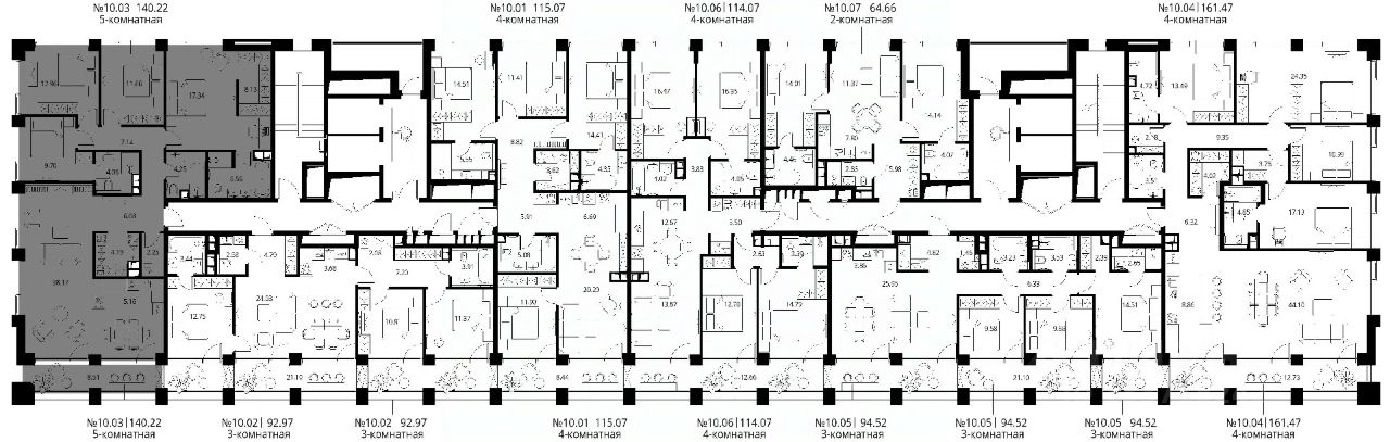 Продаётся 4-комнатная квартира общей площадью 140.22 м² с предчистовой отделкой в ЖК Сити Бэй, квартале Норс, на 10-м этаже 10 этажного дома.