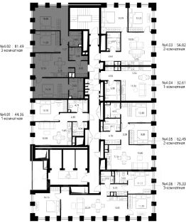 Продаётся 3-комнатная квартира общей площадью 81.49 м² с предчистовой отделкой в ЖК Сити Бэй, квартале Норс, на 4-м этаже 27 этажного дома.