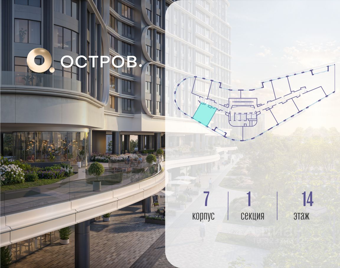 Купите квартиру в доме у прибрежного парка, в квартале ОСТРОВ.7. Это семь корпусов премиум- и бизнес-класса в одном из лучших мест ОСТРОВА - между бульваром и парком, поблизости от реки. Стильные корпуса имеют узнаваемый вид благодаря бионической пластике фасадов, приподнятых над землей. Для жителей предусмотрены детский клуб, фитнес-рум, коворкинг, переговорные, лаунжи. На крышах устроены видовые общественные пространства с зонами для отдыха и спорта. Двор расположен на двух уровнях: нижний ландшафтный парк и верхняя городская терраса.