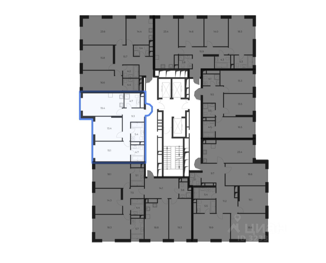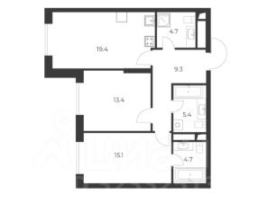 - Две спальни: 13,4 кв.м и мастер-блок 15,1 кв.м с собственной ванной комнатой 4,7 кв.м,