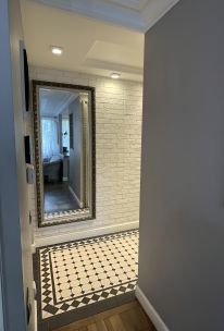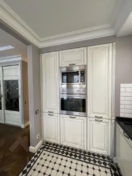 В квартире выполнен дизайнерский ремонт из высококачественных материалов. Полная замена проводки, пол комнат уложен дубовым паркетом, в прихожей и кухонной зоне плитка, теплый пол. Стеклопакеты, подоконники из натурального камня. Туалет и ванная облицованы кафельной плиткой.