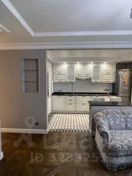 Кухня-гостиная, перепланировка узаконена. В кухонной зоне установлен гарнитур с деревянными фасадами, столешница из натурального камня (гранит), электрическая варочная панель, стиральная машина. Микроволновая печь, электродуховка Kuppersbusch, посудомоечная машина Bosch, холодильник AEG. Кондиционеры в гостиной и спальне.
