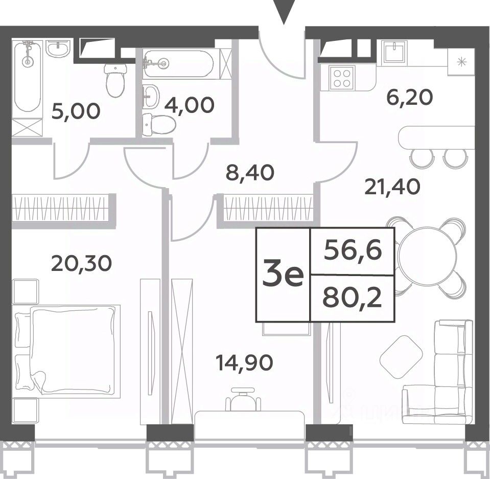 Продается просторная 2-комнатная квартира на 21 этаже в строящемся доме (Корпус 2/Башня Energy).