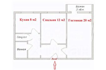 Общая площадь квартиры 56 м2.  Просторная кухня 8 м2, спальня 12 м2, большая гостиная 20 м2 с выходом на балкон. Раздельный санузел.