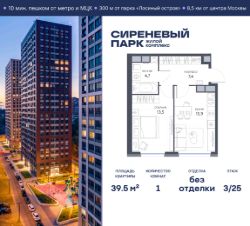 Продаётся просторная 1-комнатная квартира общей площадью 39.5 м² на 3 этаже в новом жилом комплексе "Сиреневый парк", расположенном в Восточном административном округе Москвы на улице Тагильская. Всего 10 минут ходьбы от станции метро "Бульвар Рокоссовского" и одноимённой платформы МЦК.
