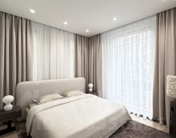 В апартаменте выполнена отделка в светлых тонах с мебелью под ключ.