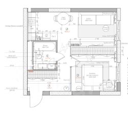 В квартире функциональная планировка, включающая в себя коридор с вместительным шкафом, просторную комнату с рабочим местом, шикарной кроватью с мягким изголовьем  и подъемным механизмом 160 на 200, большим шкафом. Кухня укомплектована хорошей техникой: посудомоечной машиной, холодильником, варочной панелью, СВЧ и электрическим духовым шкафом. В санузле установлена стиральная машинка.
