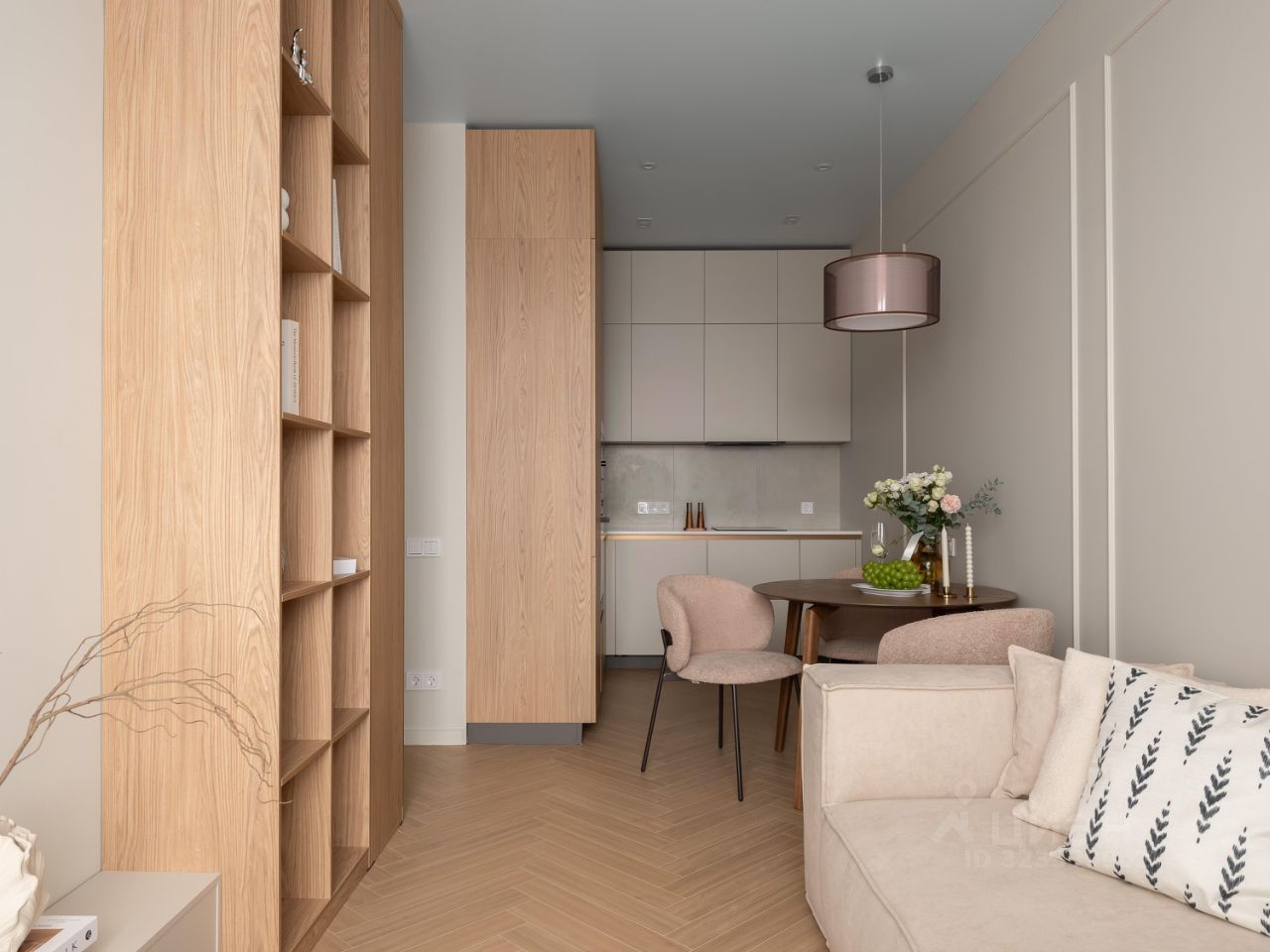 В интерьере использованы гармоничные пастельные оттенки, продуманы несколько сценариев освещения.