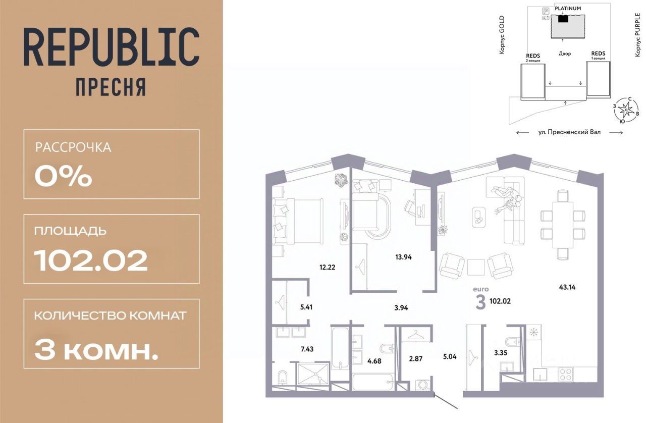 Новая квартира в ЖК "Republic" напрямую от федерального застройщика "Страна Девелопмент".