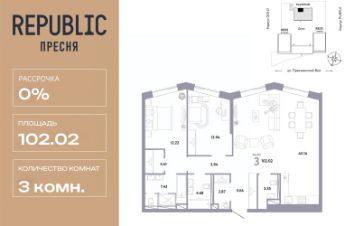 Продается 3комнатная квартира на 21 этаже от застройщика Страна Девелопмент. Площадь квартиры 102,02 кв. м.
