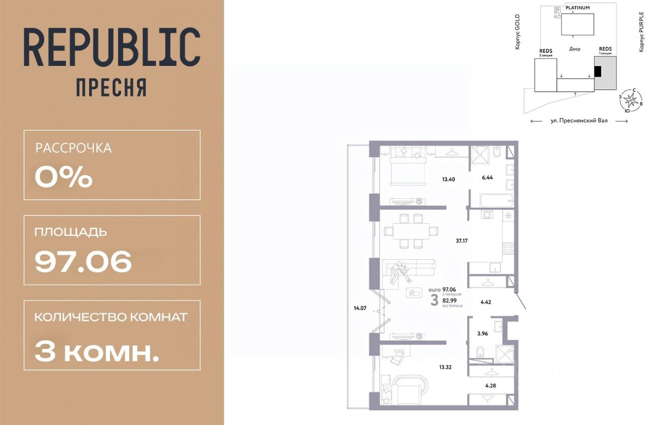 Новая квартира в ЖК "Republic" напрямую от федерального застройщика "Страна Девелопмент".