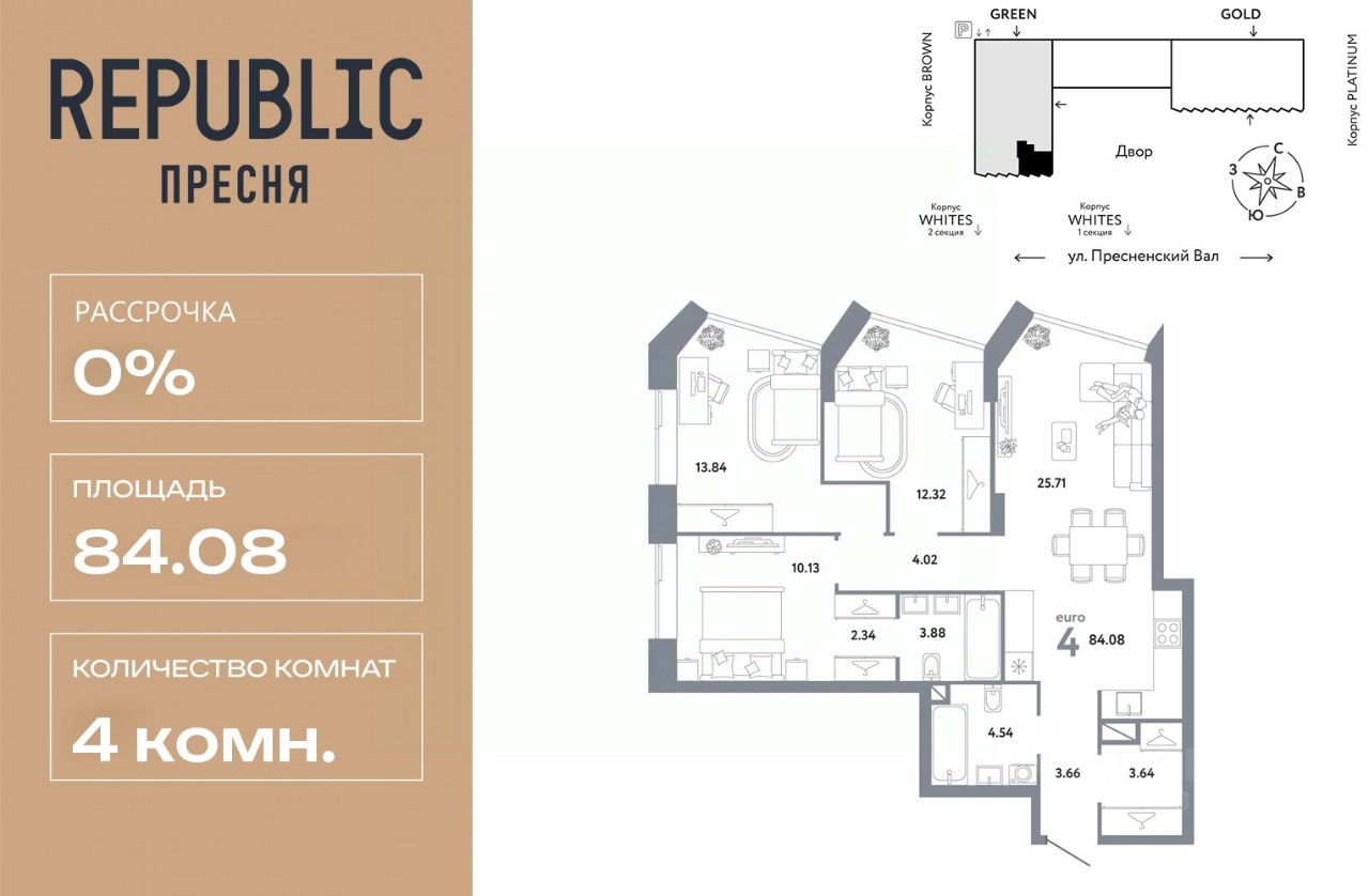 Продается 4комнатная квартира на 11 этаже от застройщика Страна Девелопмент. Площадь квартиры 84,08 кв. м.
