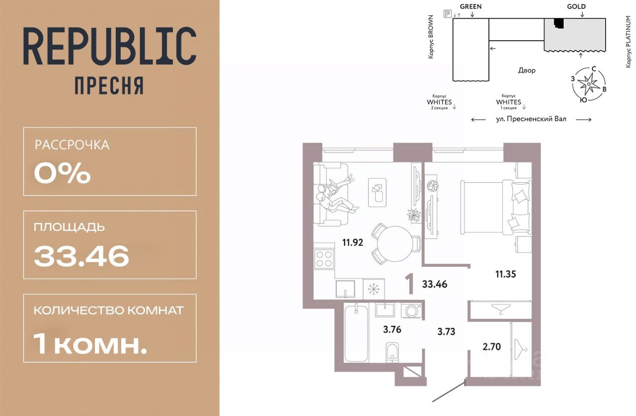 Новая квартира в ЖК "Republic" напрямую от федерального застройщика "Страна Девелопмент".