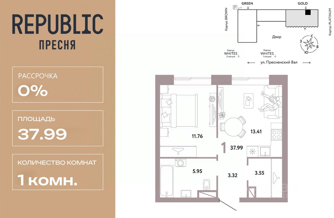 Новая квартира в ЖК "Republic" напрямую от федерального застройщика "Страна Девелопмент".