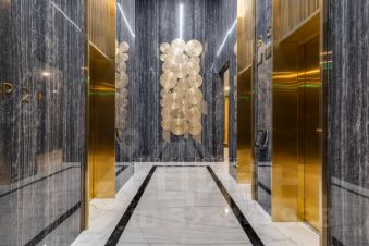 Prime Park - это городской квартал с приватным парком и фонтанами внутри ансамбля башен. Входные группы напоминают лобби хорошей гостиницы: натуральный камень, мягкий свет, стойка ресепшн и места для коротких встреч создают атмосферу уюта и комфорта.