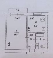К продаже представлена уютная однокомнатная квартира в кирпичном доме. Общая площадь составляет 34.3 кв. м (без учета балкона), из которых 19.1 кв. м — это жилая зона, а кухня занимает 8 кв. м. Квартира расположена на 5-м этаже 5-этажного дома. Высота потолков — 2.7 метра, что добавляет ощущение простора. Окна выходят во двор, поэтому в квартире всегда тихо и спокойно.