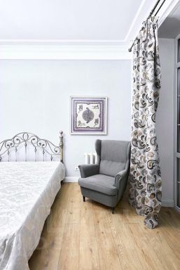 Кухня оборудована итальянским гарнитуром со встроенной техникой, есть выход на изящный кованый балкон с видом во внутренний двор. Все окна выходят во двор, в квартире тихо. Установлена система кондиционирования. Спальная комната соседствует с просторной гардеробной зоной. В комнате для отдыха возможна организация кабинета и рабочего пространства при необходимости.