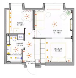 - Комфорт и эргономичность: Продуманное пространство включает в себя две зоны отдыха, зону для сна, удобную гостиную и продуманную систему хранения вещей. Встроенные шкафы заменяют отдельную гардеробную, а оборудованная кухня оснащена современной бытовой техникой.