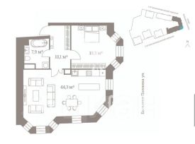 Предлагается двухкомнатная квартира в историческом особняке "Мускат" жилого комплекса делюкс-класса "Полянка 44", расположенного в районе Якиманки.