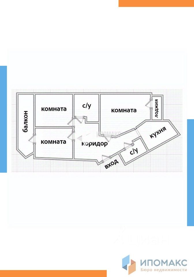 3 изолированные комнаты 17.2 м2; 14,53 м2 и 20,91 м2;