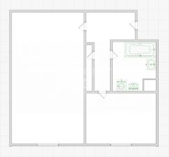 Общая площадь - 33,2 м², жилая - 18,5 м², кухня - 6 м².