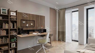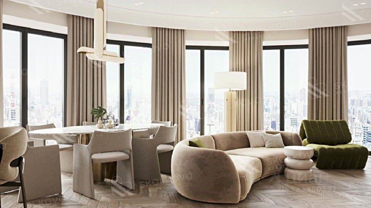 Благодаря угловому панорамному остеклению пространство наполнено естественным светом и теплом, открываются виды на высотку на Кудринской площади.