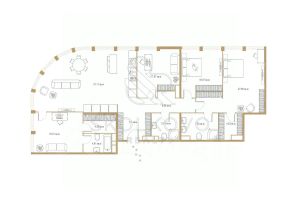 Планировка включает в себя: прихожую с гостевым санузлом, постирочную, шикарную зону кухни-гостиной из окон которой открываются потрясающие виды на центр города, высотку на баррикадной и Дом Правительства. Так же есть мастер-блок и вторая спальня со своей ванной комнатой и вместительными зонами для хранения. Во всей квартире панорамные окна, что наполняет пространство дополнительным светом.