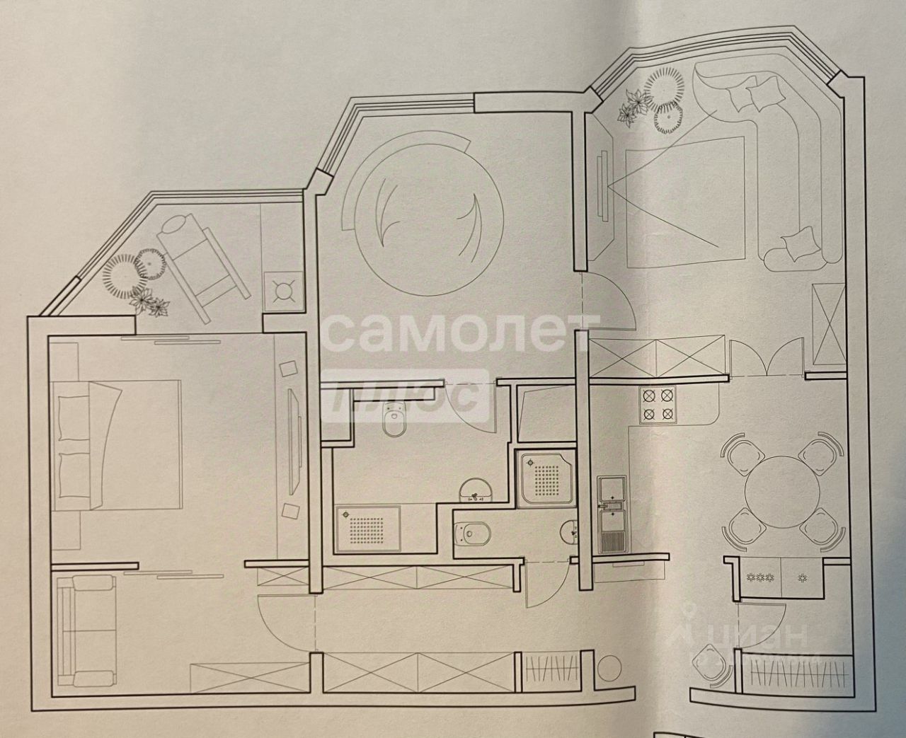 Квартира, общей площадью 90.6 кв.м, переделана в евротрешку: две изолированные комнаты, одна из которых мастер-спальня, кухня-гостиная, два сан/узла, гардеробная. В квартире выполнен дизайнерский ремонт: заменена электропроводка, радиаторы отопления, стеклопакеты, установлены кондиционеры, лоджия утеплена.