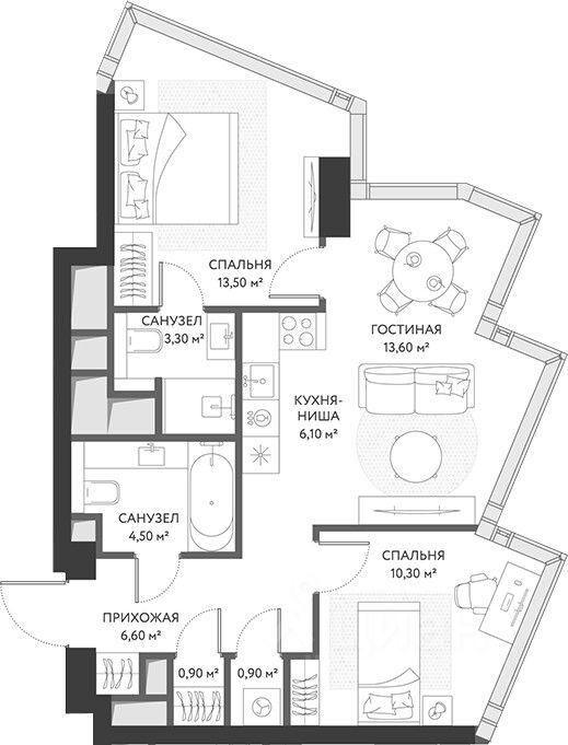 Предлагается 2к-квартира общей площадью 59.7 кв.м в ЖК hideOUT.