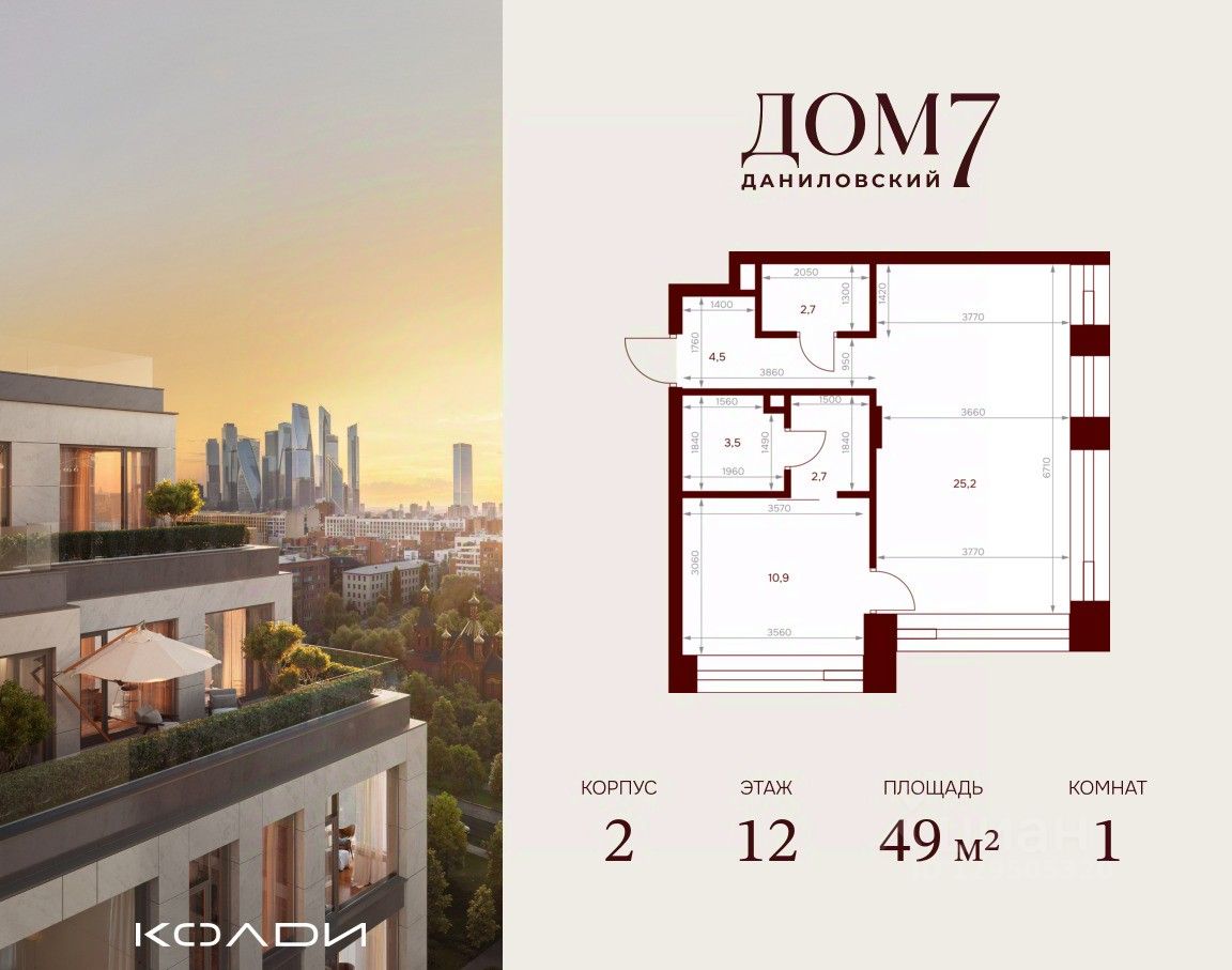 Продается 1-к квартира общей площадью 49.00 кв.м на 12 этаже в жилом квартале премиум-класса "Дом 7 Даниловский".