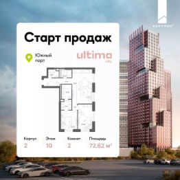Старт продаж! Продаётся 2-комнатная квартира от застройщика ГК "КОРТРОС" в жилом комплексе бизнес-класса ULTIMAcity. Квартира расположена на 10 этаже 52 этажного корпуса 2. Общая площадь 72,62 м². Без отделки.