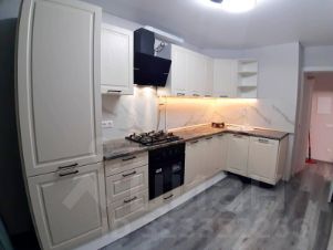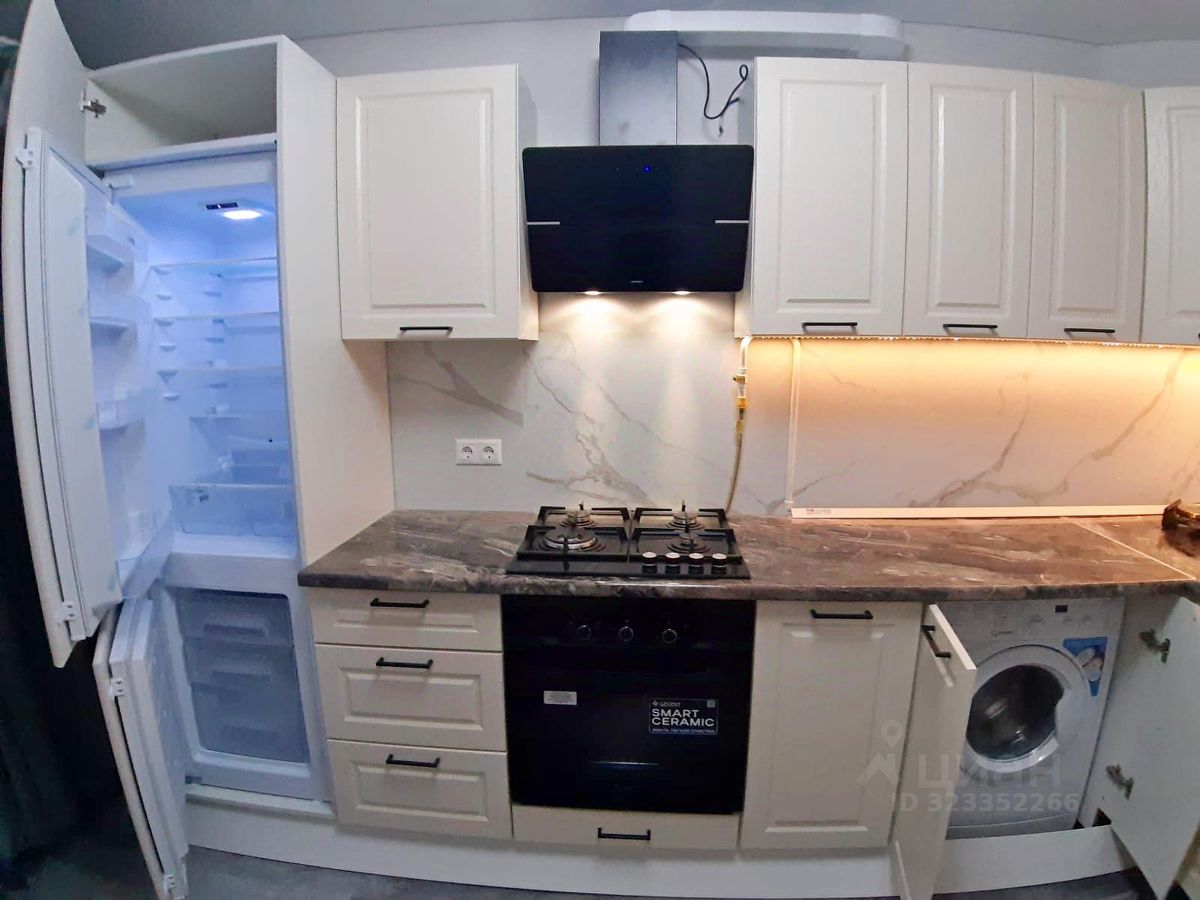 Кухонный гарнитур полностью укомплектован бытовой техникой: встроенный холодильник, посудомоечная машина, варочная поверхность керамика, духовой шкаф, вытяжка и стиральная машина. Сан узел вместительный совмещенный с ванной комнатой, просторный и светлый.