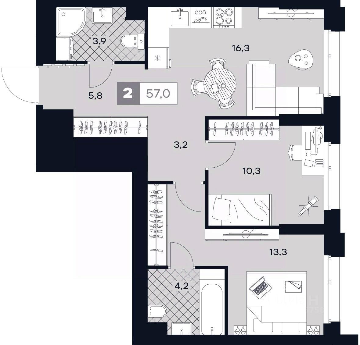 Общая площадь57 м²