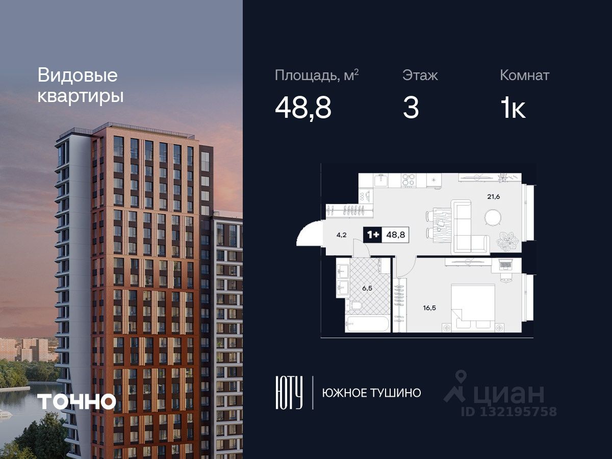 ЮТУ-камерные небоскребы бизнес-класса с исключительной архитектурой, видовыми квартирами и подходом к большой воде-благоустроенной набережной канала имени Москвы. Проект ЮТУ создает идеальный баланс жизни в городе. Это приватный оазис, где в любой момент можно сменить контекст и выбрать любой из тысячи маршрутов к активному отдыху и ярким впечатлениям. Локация премиум-класса • Первая линии в прибрежной части Химкинского водохранилища • Исключительно тихий и зелёный район Южное Тушино • За 2 минуты можно спуститься к воде, за 10 минут найти зеленые парки и готовую инфраструктуру, за 30 минут доехать до Кремля Концепция проекта • Две футуристичные башни, соединенные торговой галереей от бюро ATRIUM • 60 неповторяющихся планировок: квартиры с угловым "плавным" панорамным остеклением, мастер-спальнями и гостиными до 39м² и просто очень большие квартиры площадью до 128,6 м² • Беспрецедентная коллекция видов-в проекте 80 % видовых квартир Чувство эксклюзивности • Своя приватная жилая экосистема -только для резидентов домов • Лаунж-терраса на крыше • Пространство скрыто от посторонних глаз-с трех сторон его окружают строения проекта Прогрессивные технологии • 3-уровневая система безопасности (Face ID, BLE-метки, видеонаблюдение) • Умный паркинг с распознаванием номеров Проект федерального девелопера ТОЧНО-из ТОП-3 застройщиков России. Компания в проекте реализует ответственный подход к развитию пространств для благополучной жизни человека. И что в ЮТУ особенное воплощение приобретает концепция человекоцентричности, как заметная грань девелопмента ТОЧНО.
