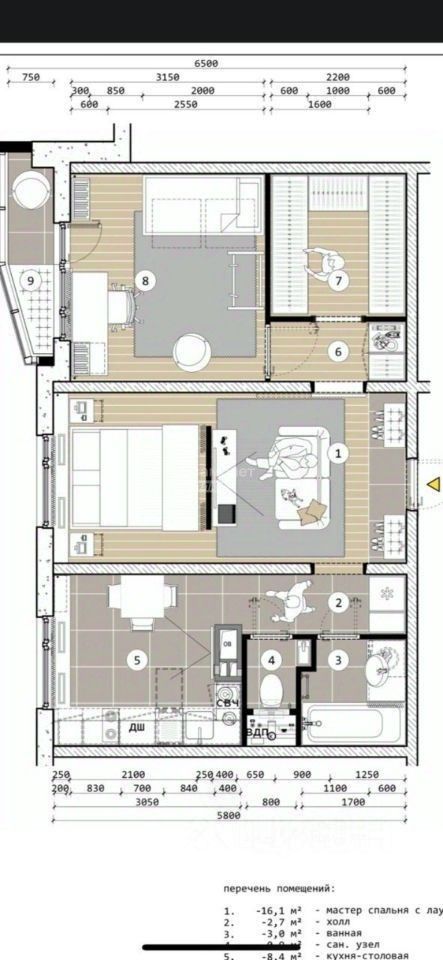 Арт. 123623646 Стильная квартира с дизайнерским ремонтом!